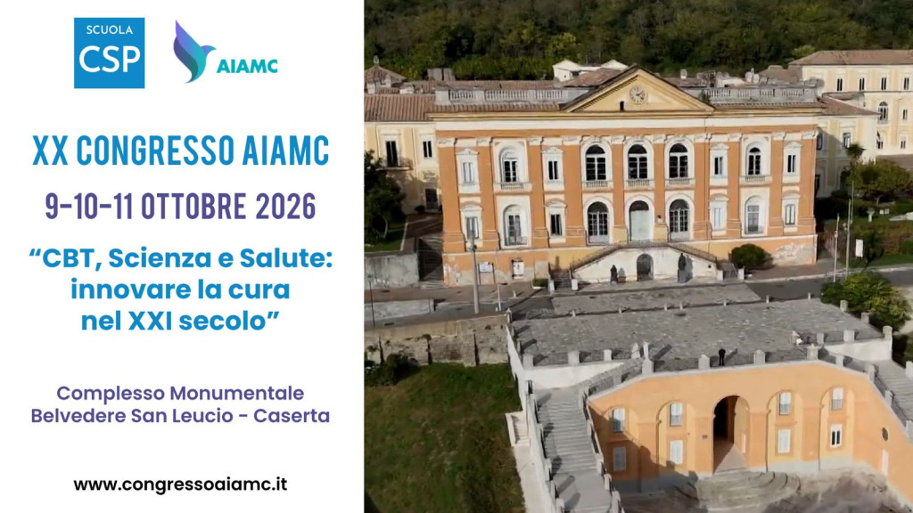 sono aperte le iscrizione al XX Congresso Nazionale AIAMC di Psicoterapia cognitivo-comportamentale che si terrà il 9-10-11 ottobre 2026 presso il complesso monumentale di San Leucio a Caserta.