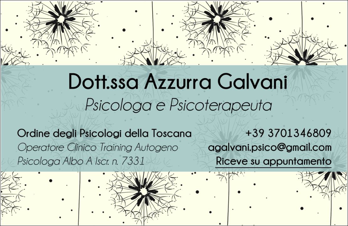 Mi chiamo Azzurra Galvani e sono una Psicologa e Psicoterapeuta Cognitivo-Comportamentale.